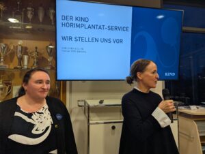 Am 12. Febr. 2025 stellten Frau Claudia Correnz-von Erdmannsorff und Frau Andrea Pfadenhauer von der Firma KIND das Konzept der wohnortnahen technischen Nachsorge für CI- bzw. Hörimplantat-Träger vor.